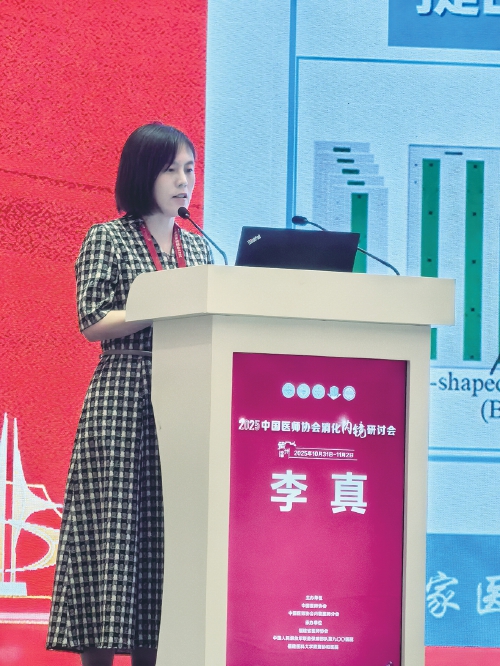 李真在2025中国医师协会消化内镜研讨会上发言。