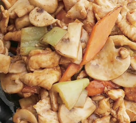 这道双菇炒鸡块口感鲜美,肥美鲜滑,不油腻,并且食后不易发胖。