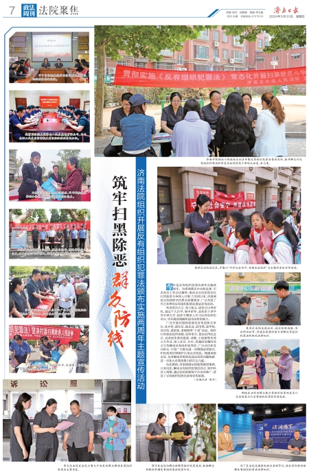 在此期间,济南两级法院梳理典型案例,以案说法,解读反有组织犯罪法亮点,制作科普小视频,通过法院新媒体平台发布推广,营造了反有组织犯罪法浓厚宣传氛围。(本报记者 侯月)