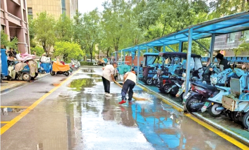 张庄路街道第一时间召开防汛安全部署会,组织各社区全面投入防汛巡查与隐患整治工作,全力筑牢汛期安全防线。安排人员加强巡查,实时监控道路积水,发现问题即登记整改。针对老旧小区围墙、车棚等老化设施,逐一排查标记隐患点并设警示引导居民避险;畅通24小时联络渠道,确保群众紧急求助及时响应。