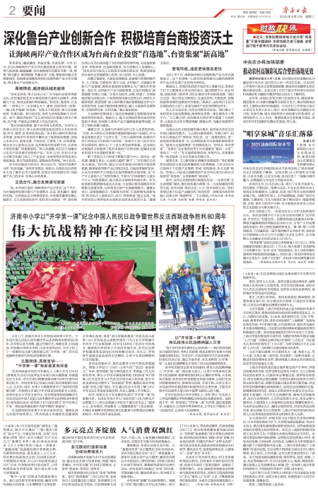 此外,合作区还将持续升级服务生态:一方面完善“全生命周期”服务,推出更多惠台政策;另一方面加强两岸经贸交流、技术对接,推动企业、人才、技术深度互动。“我们希望这里不仅是产业融合的‘经济纽带’,更能成为两岸同胞心灵契合的‘情感桥梁’。”王云刚说。(济南日报·爱济南记者 沙文婧 苏晓萌 陈曦 郭哲启 戚本英)