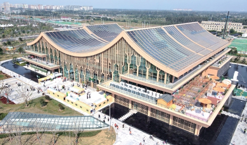 10月1日,市民游客在位于济南新旧动能转换起步区的鹊华中新园参观游玩。当日,起步区鹊山生态文化区一期项目的鹊华中新园、济南泉韵LIVE及园区景观开门迎客。进入全国首家温室园林商业综合体“鹊华中新园”,仿佛进入了绿植郁郁葱葱的“温室雨林”,其融合了新加坡元素,突出南洋风情,特别是门前的“鱼尾狮”是山东省首座经新加坡官方授权建设的,象征着“狮城”与“泉城”文化对话的全新开端。