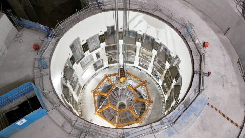 在BEST装置主机大厅,记者看到数条钢缆吊起形如巨大“瓶塞”的杜瓦底座,缓缓放入中央的“深坑”。“杜瓦底座相当于装置的‘地基’,未来将承载整个主机6000余吨设备的重量。”中国科学院合肥物质科学研究院等离子体物理研究所副研究员黄雄一告诉记者,该底座重400余吨、直径约18米、高约5米,不仅是BEST主机中最重的单体部件,也是国内聚变领域迄今最大的真空部件。研制过程中,项目团队突破高精度成型和焊接、毫米级形变控制、高真空密封等关键技术。