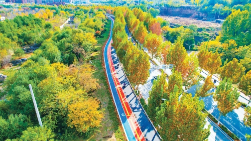 11月16日,济南市市中区兴仲路林荫绿道迎来最佳观赏期。作为今年市中区民生实事重点项目之一,这条2.6公里的生态廊道已完成建设并进入养护阶段。初冬时节,阳光穿透枝叶,在沥青步道上投下斑驳光影。