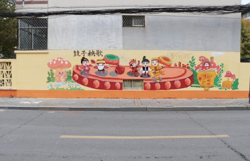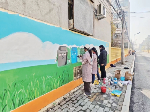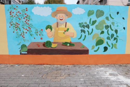 为让墙绘作品既贴合城市文明建设要求,又贴近民生、便于传播,双方多次深度对接:一方面将垃圾分类、街巷环境提升等城管重点工作转化为生动画面,让市民在观赏中直观了解城管工作;另一方面融入济阳地标、特色农副产品、鼓子秧歌非遗文化等本土元素,将抽象文明理念与地域文化转化为场景化视觉内容,增强群众认同感。