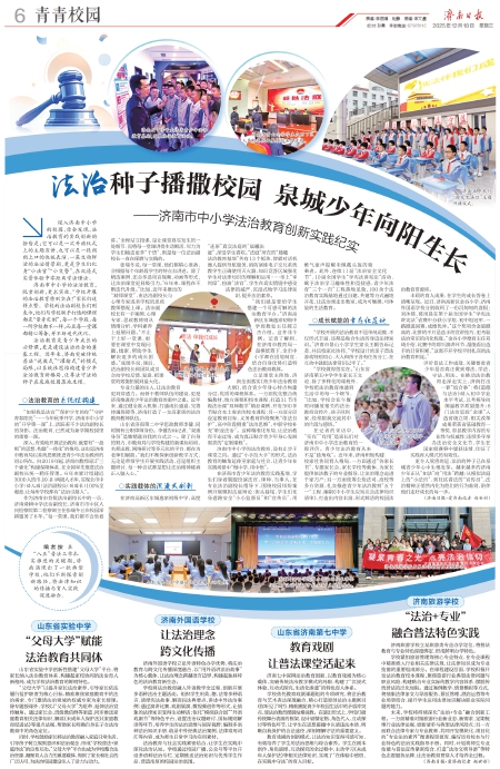 深入济南中小学的校园,你会发现,法治教育的实践创新俯拾皆是:它可以是一次升旗仪式上的主题宣讲,也可以是一段朗朗上口的快板表演、一幕生动鲜活的法治情景剧,更是学生们化身“小法官”“小交警”,在沉浸式实景体验中零距离学法懂法。