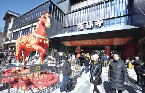 春节假期,游客在北京隆福寺新春市集游览购物。(新华社发)