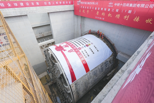 3月20日,随着“启航号”盾构机顶推到位,济南航天大道黄河隧道南线盾构顺利贯通。济南航天大道黄河隧道全长3888米,其中南线盾构段长3252米。项目建成后,将进一步完善黄河两岸城市路网体系,推动济南新旧动能转换起步区建设。(新华社记者 朱峥 摄)