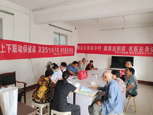 图为县级专家和卫生院家庭医生团队正在为签约患者开展随访、义诊。