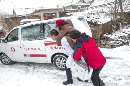 图为淄博市“行走的医生、流动的医院”为村民提供送上门的医疗服务。