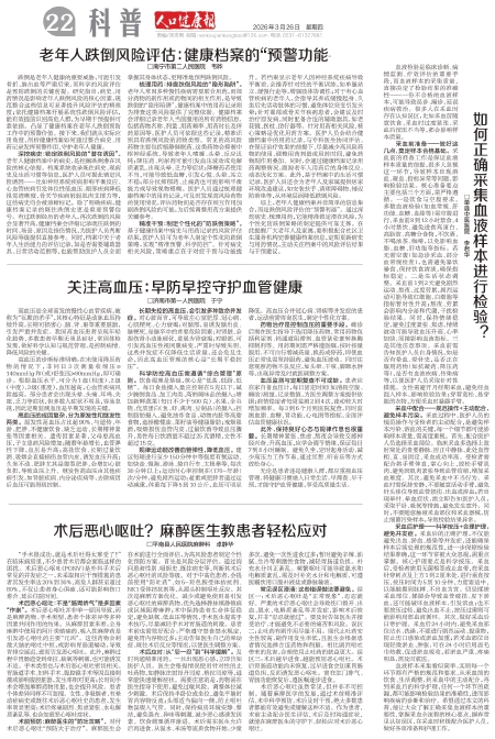 老年人跌倒风险评估:健康档案的“预警功能”□南宁市第二人民医院 韦晔